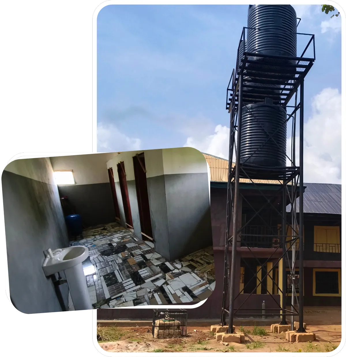 bei Wasser, Infrastruktur, Sicherheit und würdigen Lernräumen.